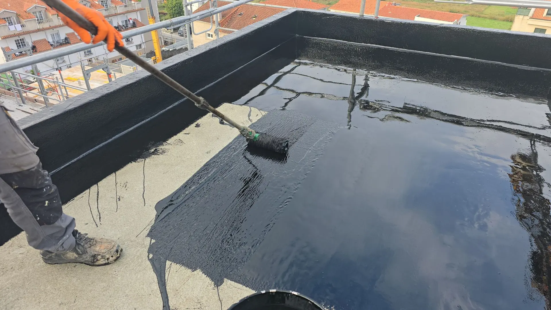 Ejemplo de impermeabilización con membrana bituminosa Hyperdesmo PB2K de forjado de hormigón previamente imprimado con Universal primer, Primer D o Aquadur. Es muy importante la preparación del soporte.